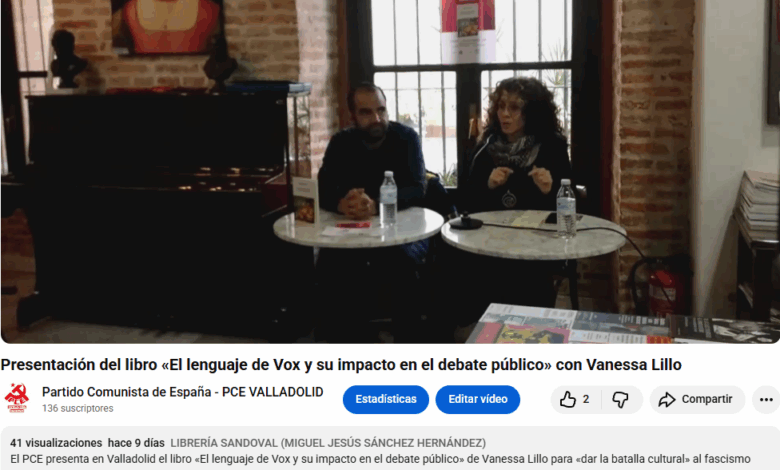Leer más »El PCE presenta en Valladolid el libro «El lenguaje de Vox y su impacto en el debate público» de Vanessa…