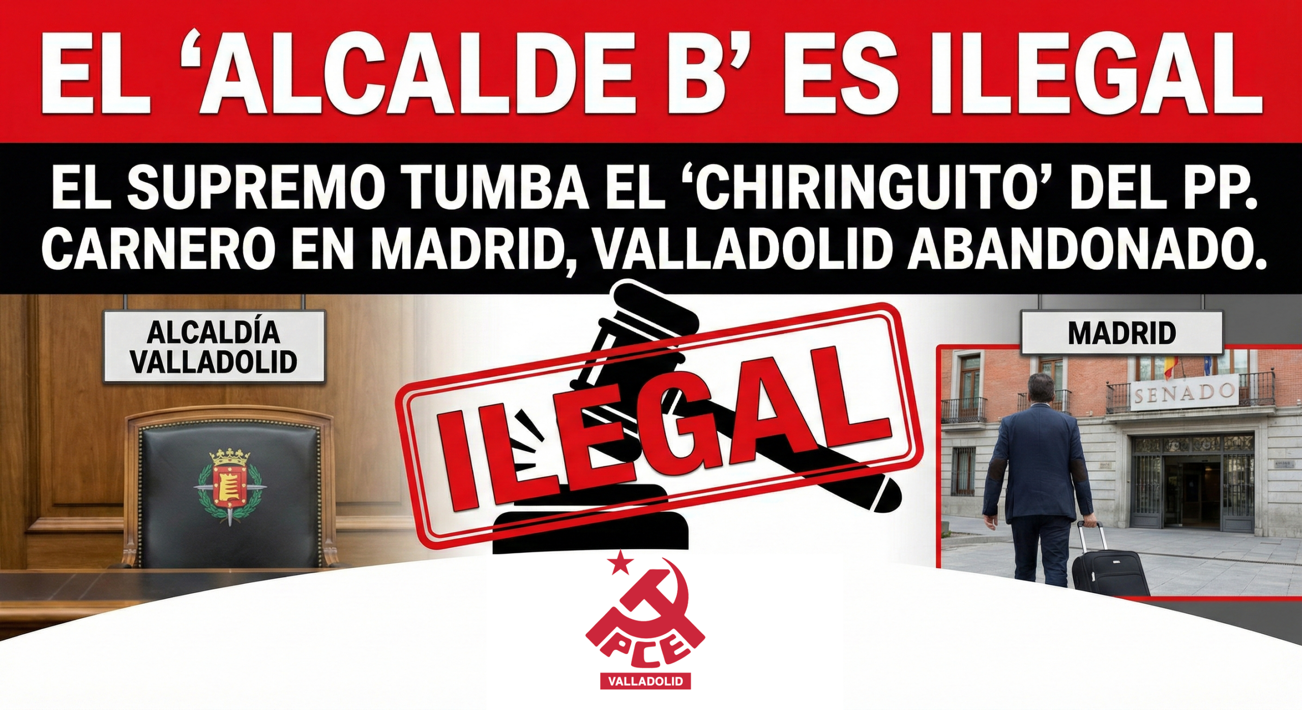 Valladolid, 6 de febrero de 2026 — El Partido Comunista de España (PCE) en Valladolid ha valorado hoy la sentencia del Tribunal Supremo que confirma la ilegalidad del puesto de Director de Gabinete de Coordinación y Proyectos Estratégicos, conocido popularmente como el ‘Alcalde B’. Para la organización política, este fallo judicial no solo representa un varapalo jurídico para el equipo de gobierno de Julio Carnero, sino que ratifica las denuncias que desde Valladolid Toma la Palabra se han venido realizando desde el inicio de la legislatura.