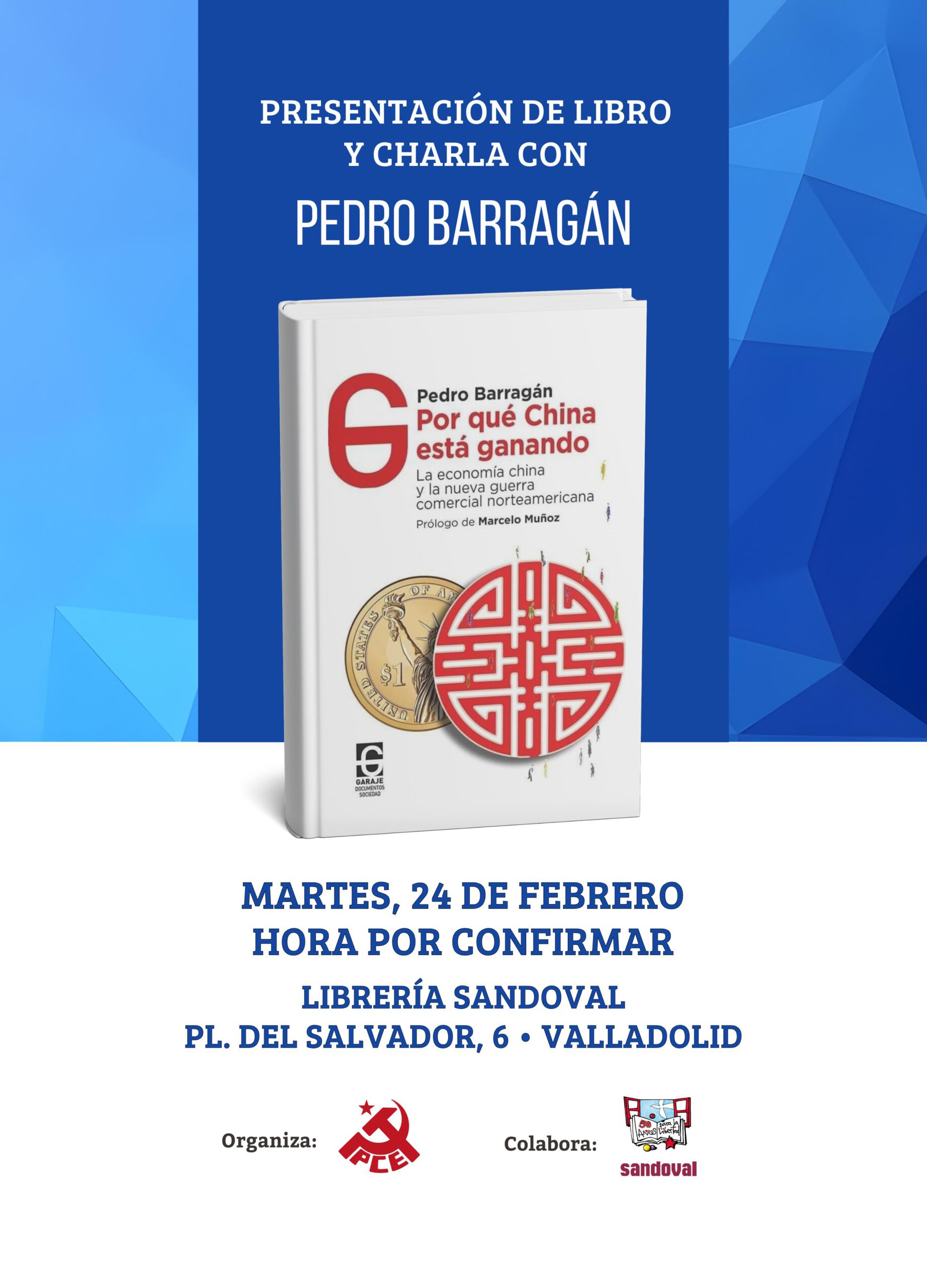 Desde el núcleo del PCE en Valladolid organizamos una nueva presentación de libro, con Pedro Barragán y su libro de economía y comercio sobre China “Por qué China está ganando”. La presentación tendrá lugar en colaboración con la Librería Sandoval en su local de la Plaza del Salvador 6, Valladolid, martes 24 de febrero (hora por confirmar).
