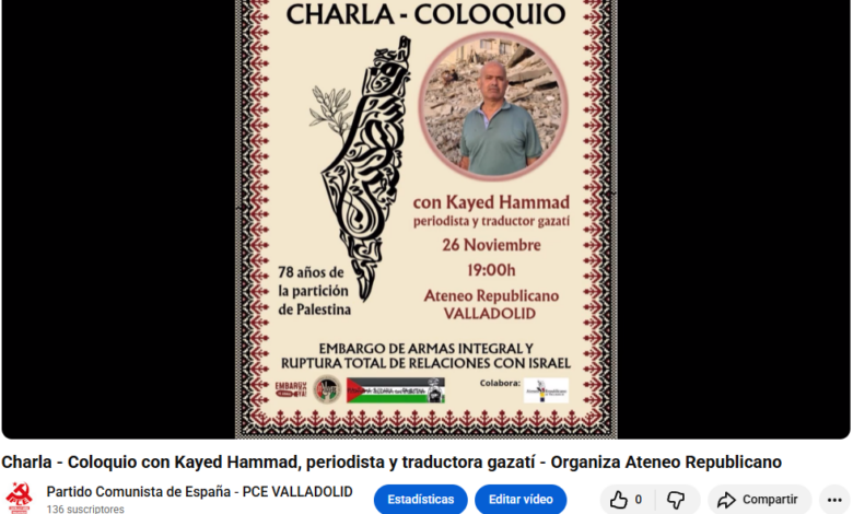 Leer más »Video de la charla del 27 de noviembre en Medina del Campo, organizamos, junto a la Plataforma solidaria con Palestina…